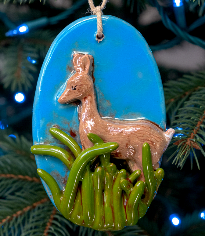 Flowers and Vines on a Textured Ceramic Oval Ornament