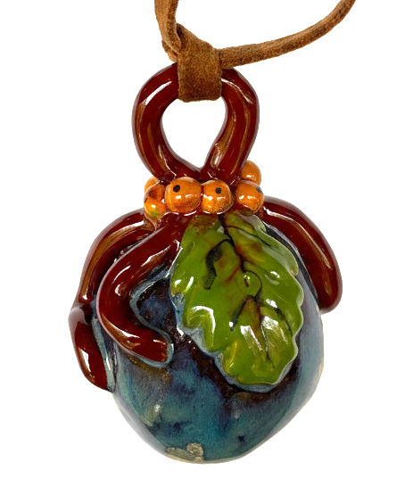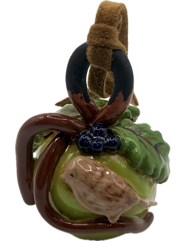 Ceramic Bauble With Baby Wren, Leaves, Vines and Berries