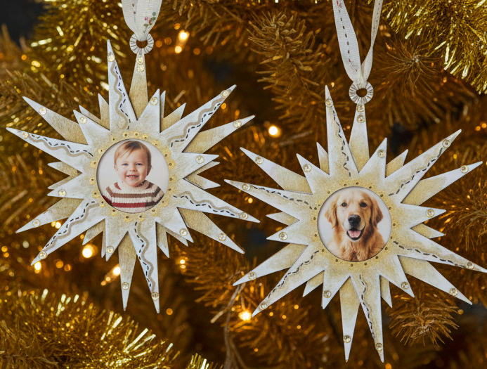 Hand Painted Millefiori Inspired Christmas Tree Photo Ornament